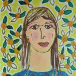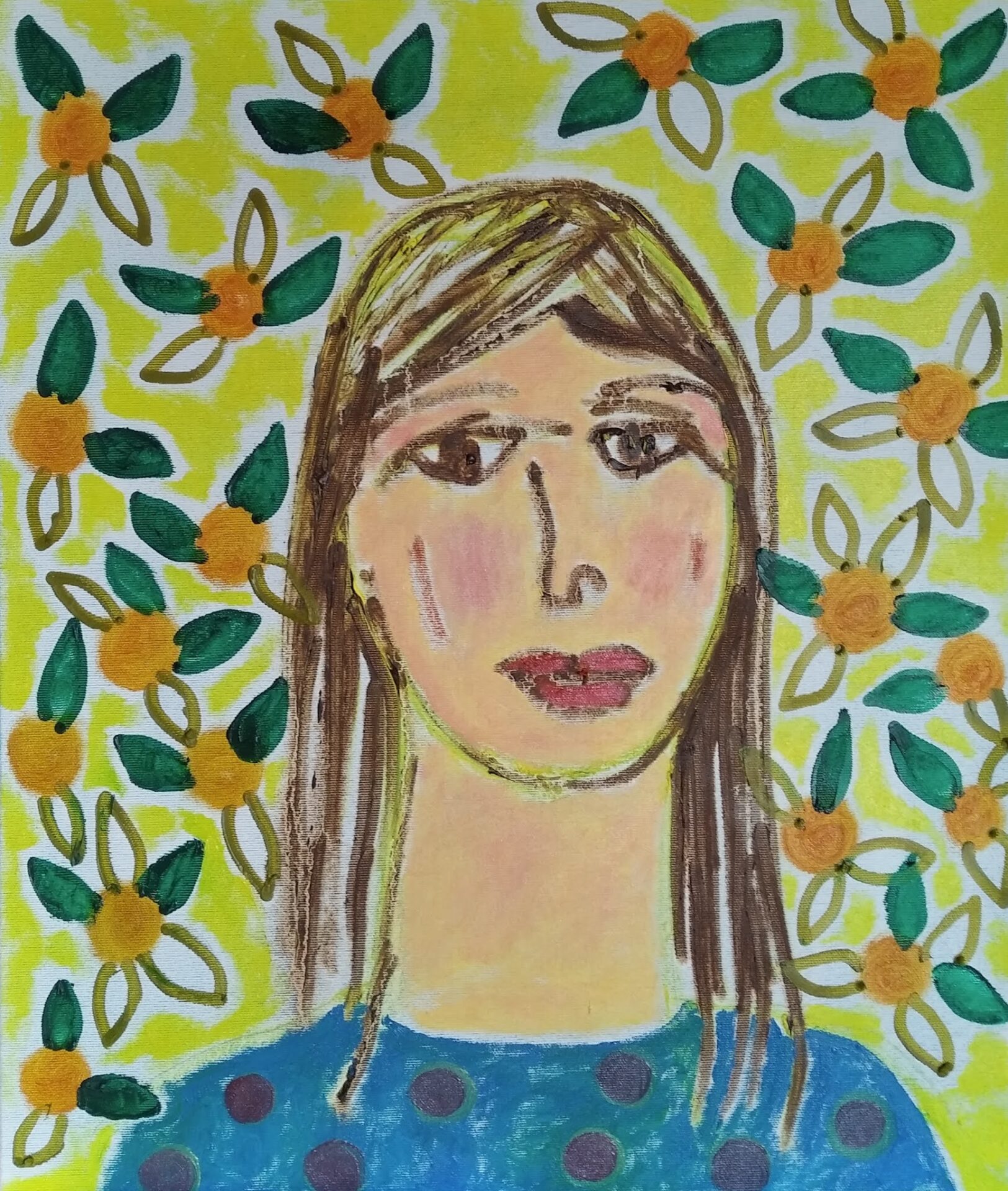„Dziewczyna z mandarynkami”, olej na płótnie, 60×50 cm, 2021