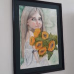 Dziewczynka z bukietem słoneczników. Akwarela na papierze 100% bawełny, gramatura 300 g. Obraz w formacie A2 (42×60 cm). Sprzedaję bez ramy i passparout. Wysyłka kurierem (przedpłata) 20 zł. Zapraszam do zakupu.