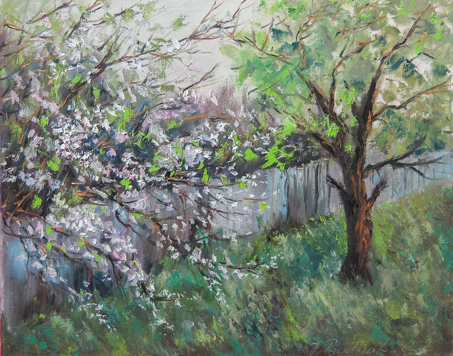 Obraz olejny na podobraziu płóciennym w technice alla prima z widoczną fakturą farby