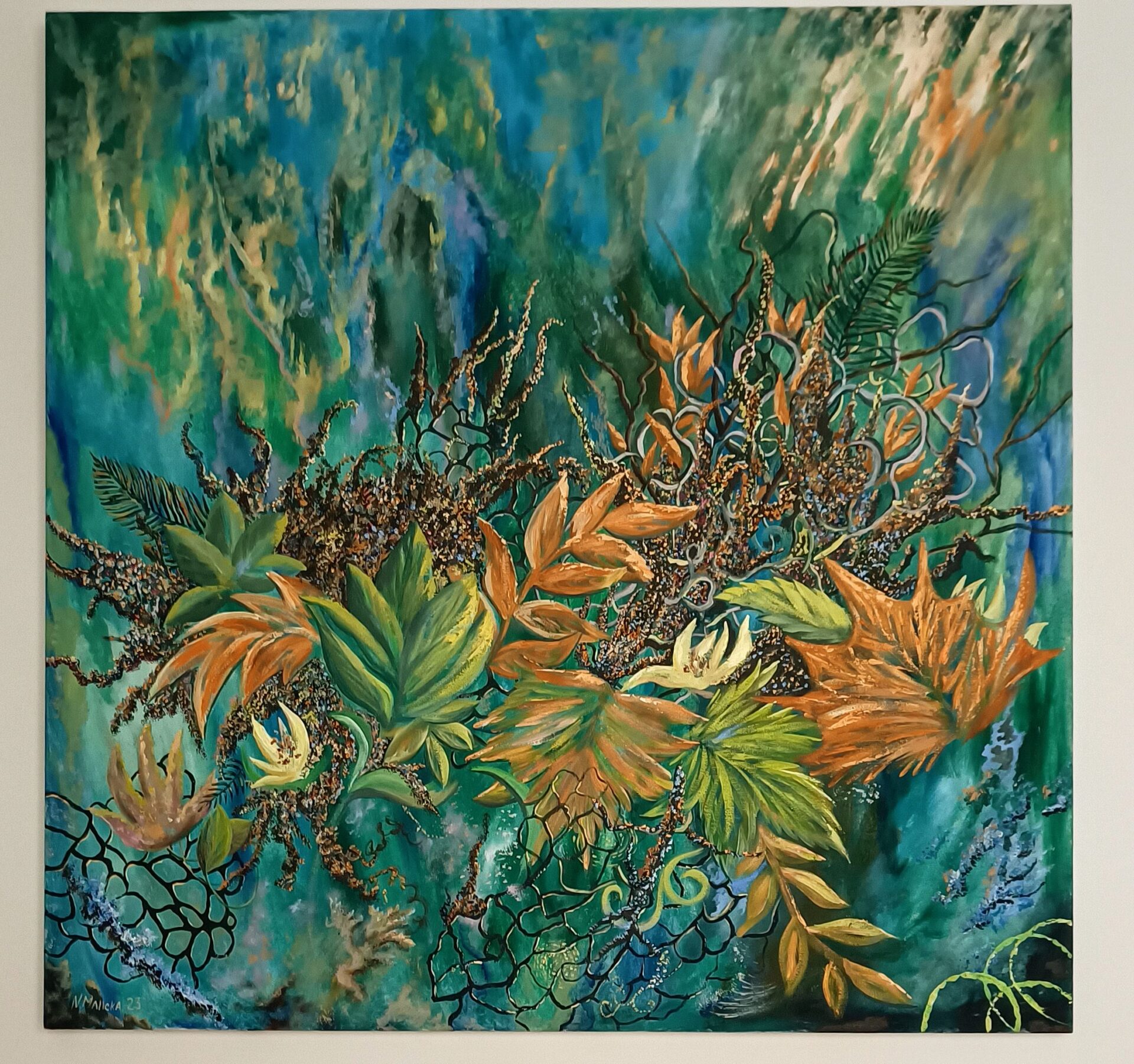 Sprzedaję obraz olejny 100×100,olej na płótnie,technika mieszana.Uwielbiam każdą porę roku!Ale jeseń móim faworytem-różnorodna gama kolorów,przyroda przemienia się i przybiera się najlepsze stroję Inspiruję mnie przyroda,kwiaty,nawet ..zapachy zgniłych liści….)