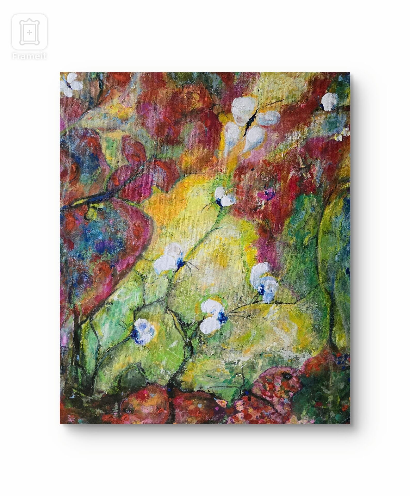 Obraz akrylowy na płótnie naciągniętym na drewniany blejtram. Jest gotowy do powieszenia.