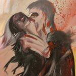 Duży obraz namalowany akrylami na płótnie o wymiarach 80×60 przedstawiający motyw trudnej miłości, gorącego romansu który mimo, że jest krzywdzący dla mężczyzny , ten nie potrafi opuścić kobiety. Pełnia kolorów wokół symbolizować ma teoretyczne szczęście które coraz bardziej ulega zniszczeniu.