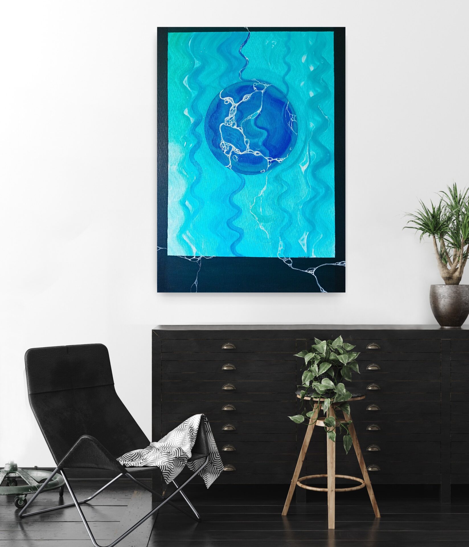 Woda, otacza nas z każdej strony, to z niej właśnie wzięło się życie. Żywioł zarówno spokojny i o wielkiej burzliwej sile, tworzy i niszczy. Ten obraz ukazuję esencję tego pięknego, wielkiego organizmu jego dwojaką naturę będąca w ciągłym ruchu