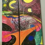 Obrazy powstały przy użyciu farb akrylowych i olejnych