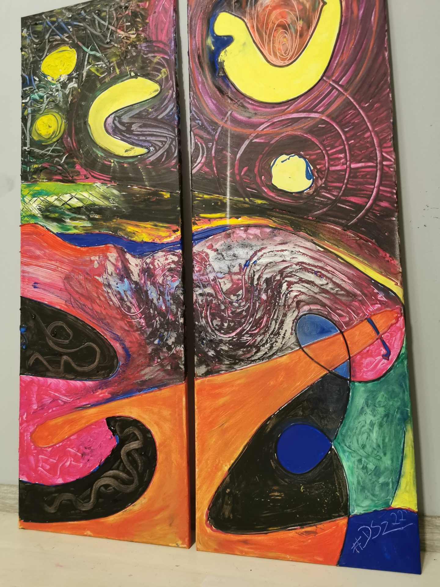 Obrazy powstały przy użyciu farb akrylowych i olejnych