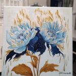 Przedstawiam obraz z serii Fantazyjne kwiaty, pt.: „Fantazyjne piwonie” mojego autorstwa, namalowany profesjonalnymi farbami akrylowymi na bawełnianym podobraziu 3D (szerokość blejtramy 3 cm), pokryty grubym płótnem włoskim o doskonałej jakości. Boki obrazu zostały zamalowane zgodnie z kolorystyką tła. Całość wykończyłam werniksem z połyskiem. Obraz nie wymaga zakupu ramy – jest gotowy do powieszenia. Wymiary 40 x 40 cm. Obraz w świetle się mieni, dzięki złotym akcentom ( na kwiatach, tle oraz liście zostały wykonane ze złotej farby oraz tzw. złota płatkowego). Podpis autora znajduje się na awersie i rewersie. Na życzenie klienta mogę wystawić certyfikat autentyczności. Obraz jest niepowtarzalny i elegancki, przykuwa uwagę. Doskonale przyozdobi zarówno salon, kuchnię, gabinet czy sypialnię. Świetnie również się sprawdzi jako prezent. Zapraszam również do obejrzenia innych moich prac.
