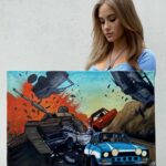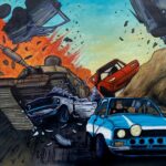Scena z filmu „Fast and Furious 6”. Obraz namalowany farbami akrylowymi na podobraziu. Wymiary obrazu wynoszą 50/70 cm. Możliwość negocjacji ceny. Autor obrazu Natalia Begier.