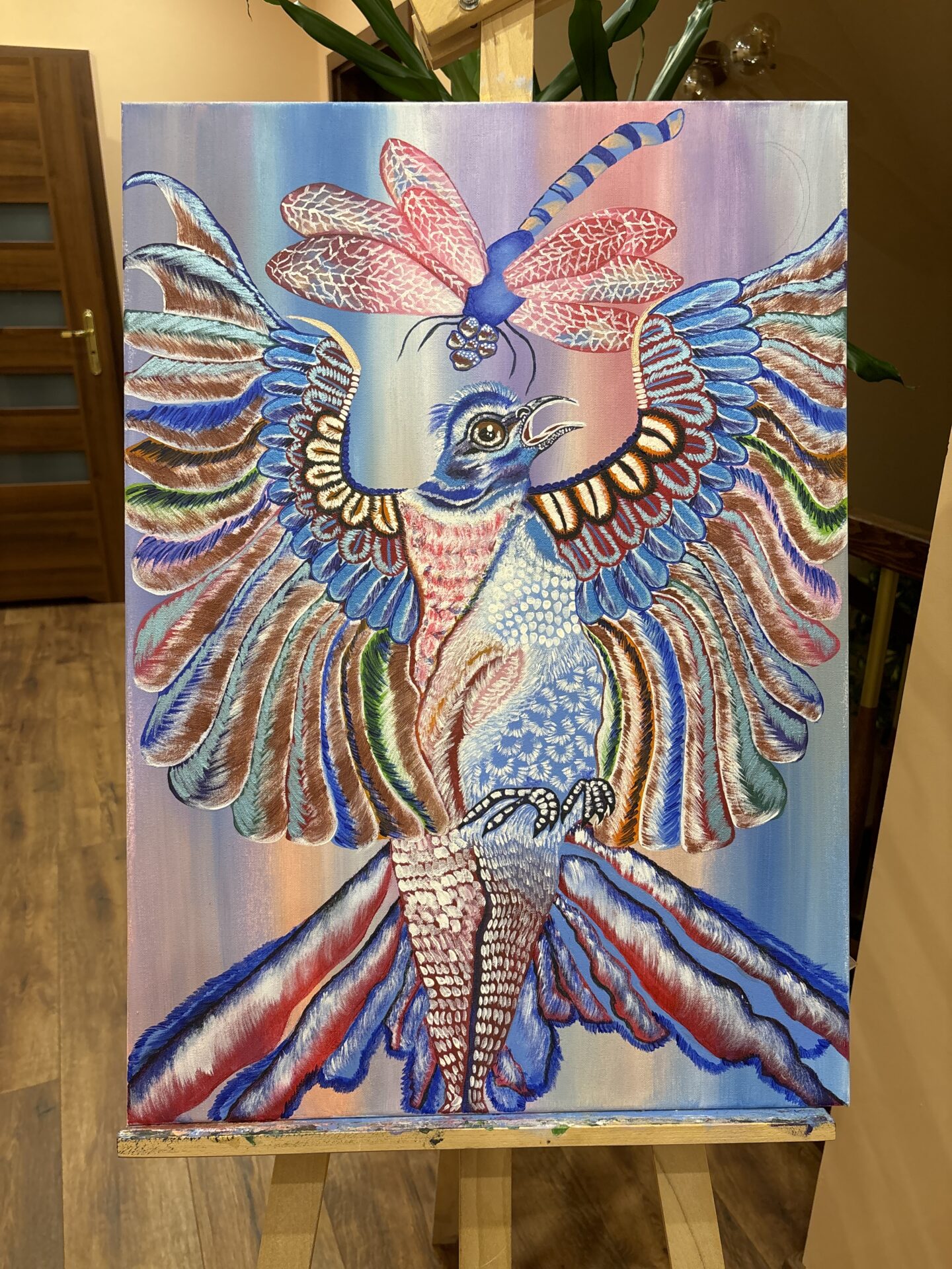 Obraz Feniks przedstawia moją wersję Feniksa który jest symbolem Wiecznego odradzania się życia. Obraz malowany Akryl na płótnie.
