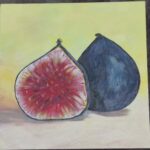 Figa. Owoce. Akryl na desce. Malarstwo akrylami na desce jest dość młodą ale najbardziej dziś popularną techniką malarską. Prace w technice akrylowej cechuje wysoka trwałość, a farby akrylowe pozwalają artyście na dużą swobodę w kreowaniu obrazu.