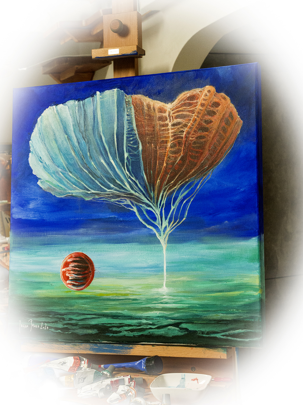 Obraz autorski na płótnie bawełnianym 322g/m2 Farby Maxi Acril i Mairmeri 60×60 Werniks końcowy z filtrem uv praca na blejtramie 3D