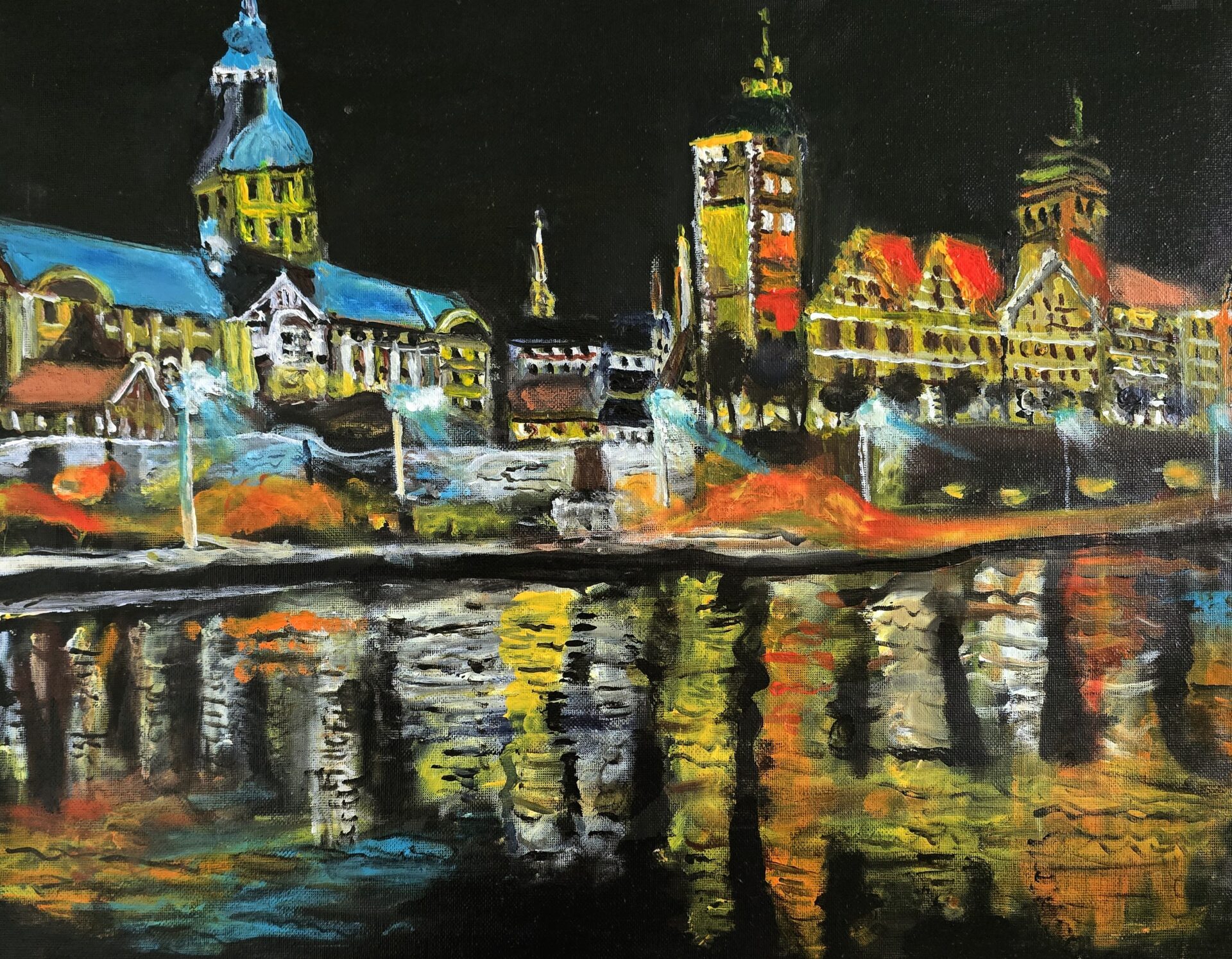 Obraz akrylowy ręcznie malowany na płótnie naciągniętym na bjetram drewniany.