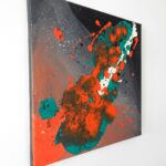 Informacje podstawowe: akryl na płótnie bawełnianym (gruntowanym) 30×30 cm. Barwy: czerń, biel, zieleń, pomarańcz. Boki czarne. OBRAZ POSIADA W NIEKTÓRYCH MIEJSCACH WYPUKŁE ELEMENTY CO SPRAWIA, ŻE WYGLĄDA JESZCZE BARDZIEJ REALNIE.