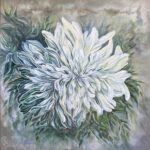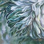 Obraz inspirowany pięknem świata natury, wykonany techniką akrylową, utrzymany w szaro-szmaragdowej tonacji. Wymiary 100×100 cm.