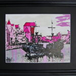 „Gdańsk Żuraw i Statek Piracki”, 2021 należy do cyklu obrazów przedstawiających motywy dawnego i współczesnego Sopotu, Gdańska oraz Gdyni. Praca pozwoli podkreślić indywidualny charakter Twojego wnętrza oraz podnieść jego prestiż. Prace są niepowtarzalne, wykonane piórkiem, tuszem oraz farbami akwarelowymi i akrylowymi. Każda praca jest sygnowana i oprawiona w passe-partout oraz czarną elegancką ramę o wymiarach 57×47 cm gotowa do zawieszenia.
