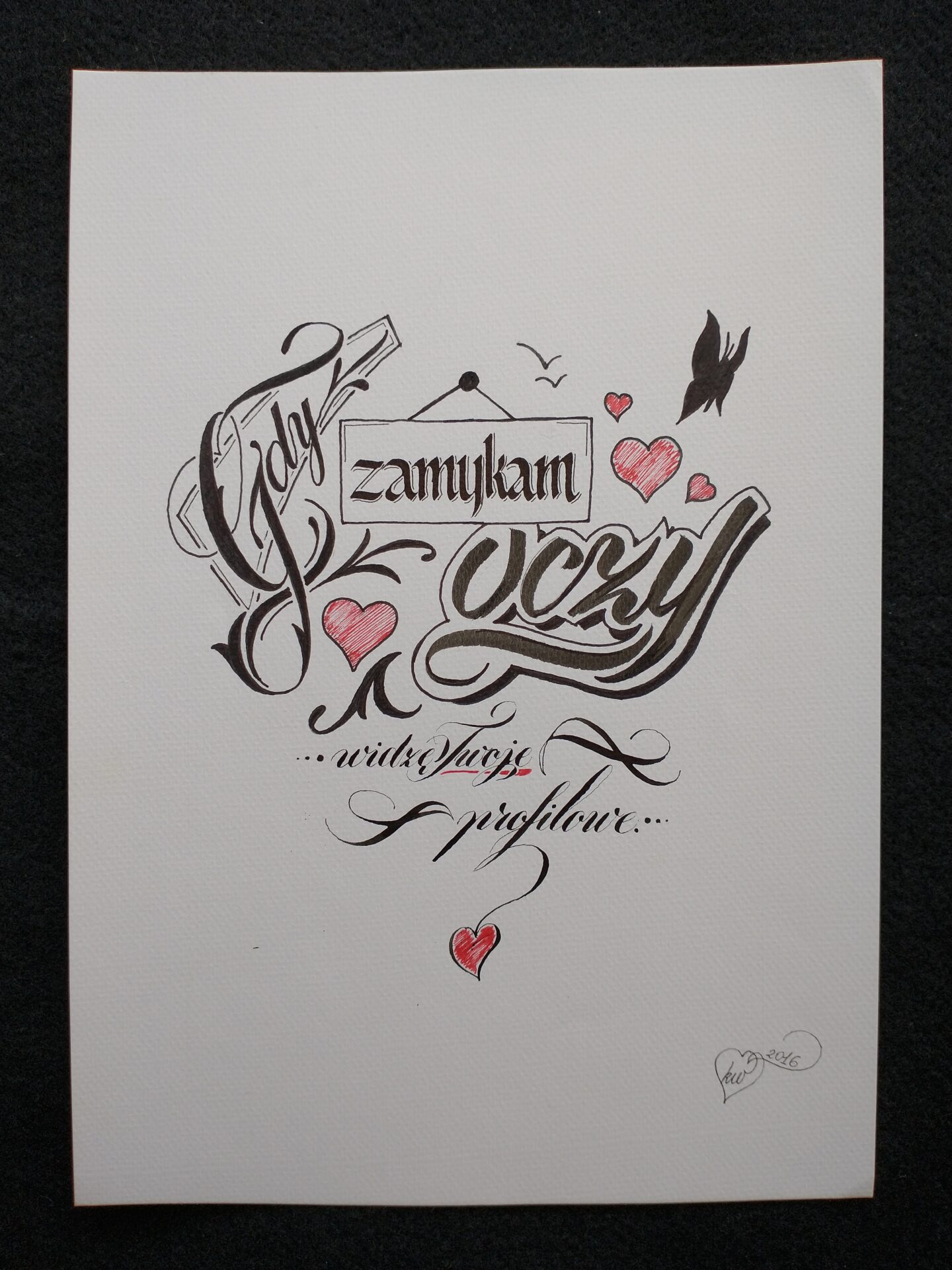 Istnieje możliwość wykonania na zamówienie kaligraficznej pracy odręcznej lub cyfrowej (projekty log, nadruków, tatuaży itp.).