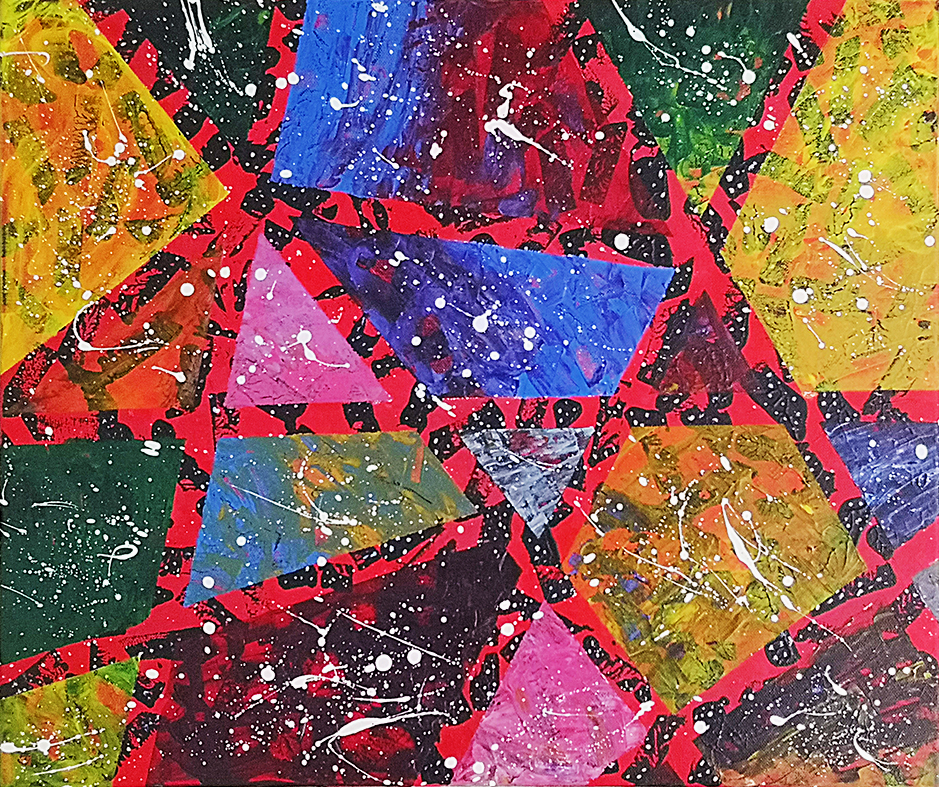 Ten obraz zaprasza widza do abstrakcyjnej podróży, w której geometryczne figury – trójkąty, czworokąty, pięciokąty – zostają użyte jako narzędzia wyrazu artystycznego. Kształty te, choć abstrakcyjne, tworzą wrażenie harmonii i równowagi, podobnie jak elementy w muzyce skomponowanej w symfonii.