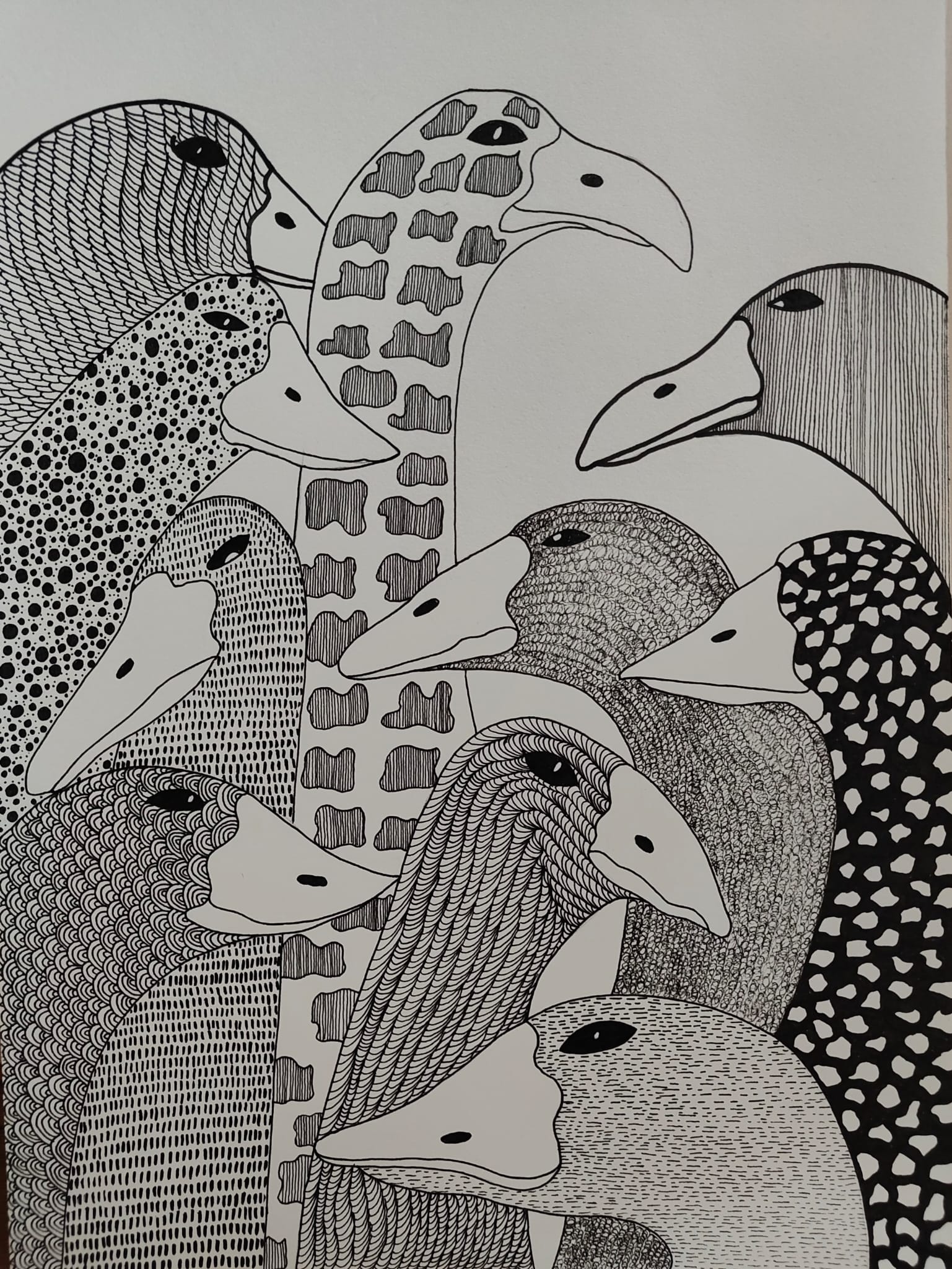 Gęsi. Obraz ręcznie wykonany cienkopisem