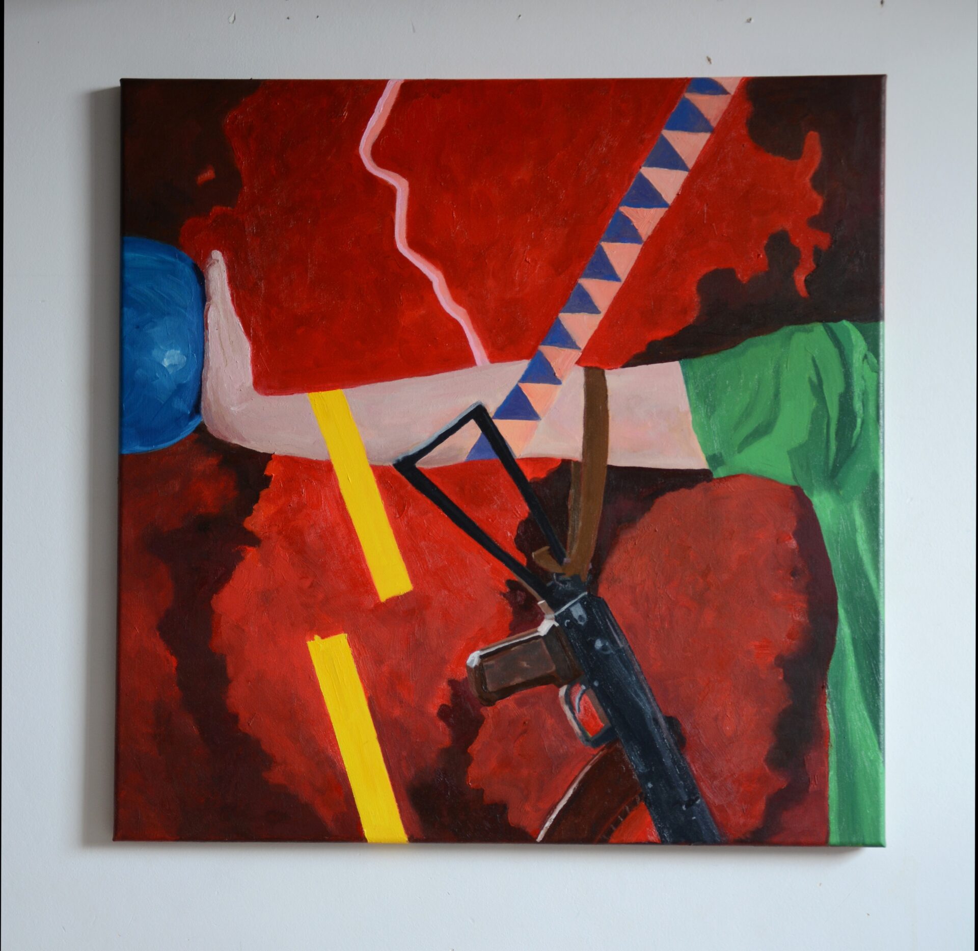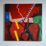 Paweł Kusyk „Gimnastyka” olej na płótnie lnianym, 70 cm x 70 cm, 2024