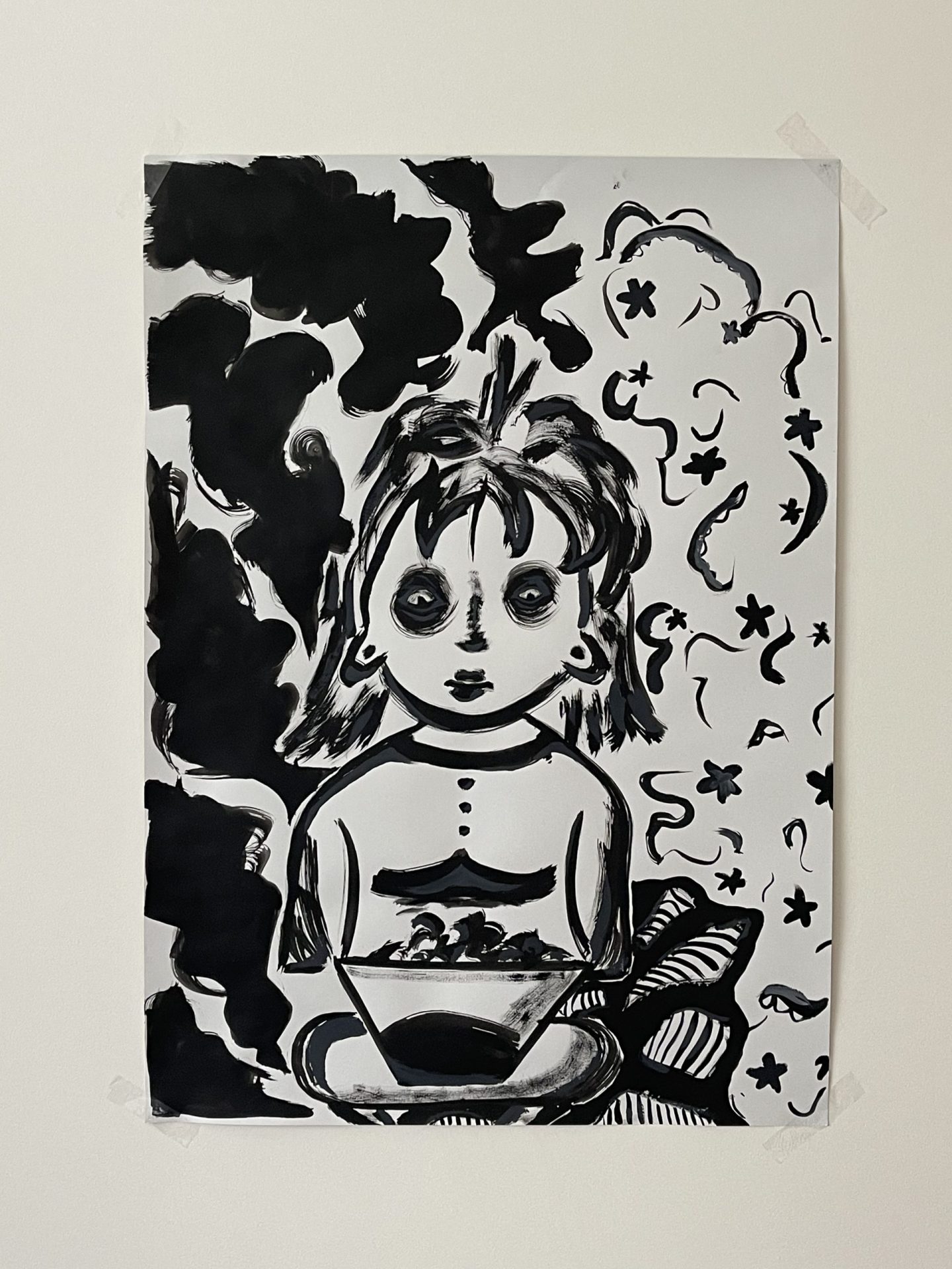 “Girl in the garden” by Lenivute D., was first made as a sketch and then was recreated into the painting.