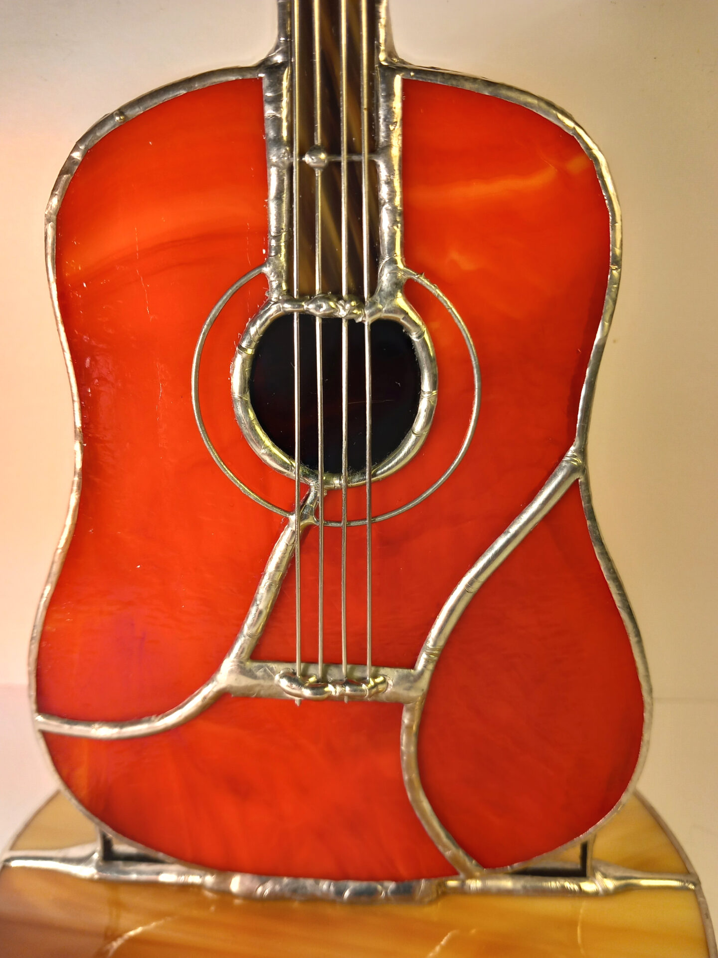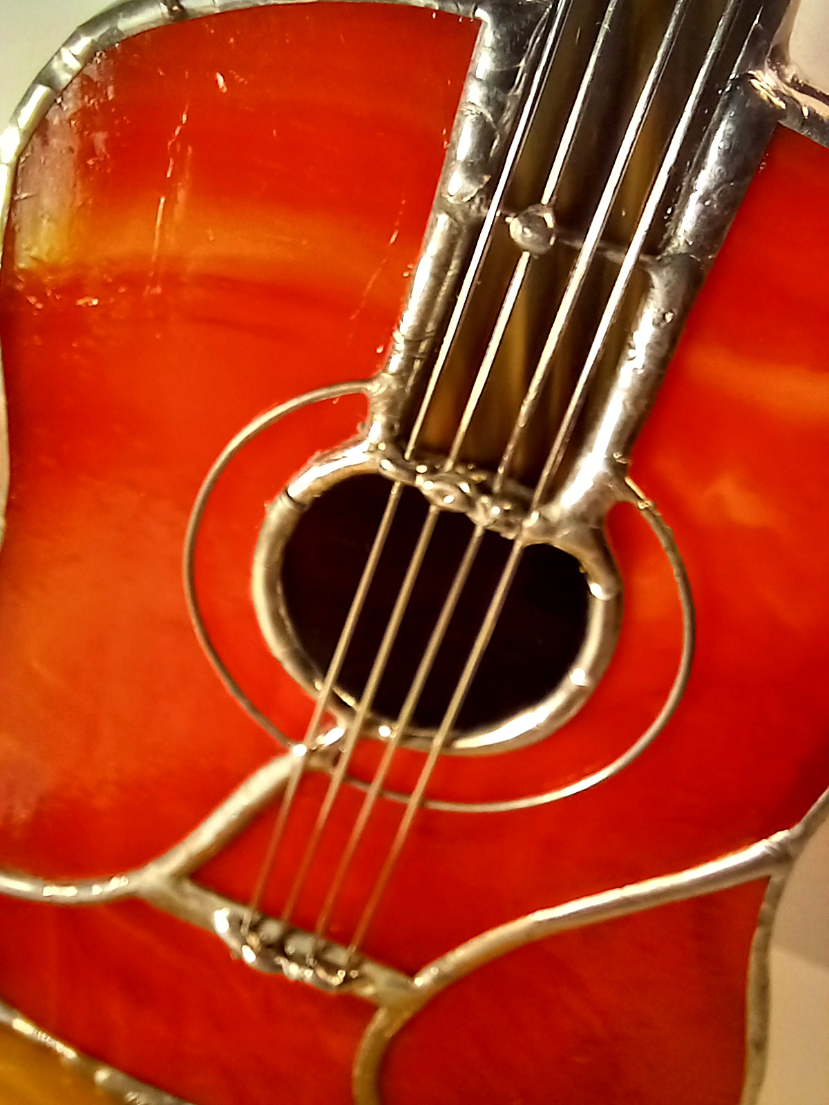 Statuetka ze szkła witrażowego i metalu wykonana w stu procentach ręcznie techniką tiffany.