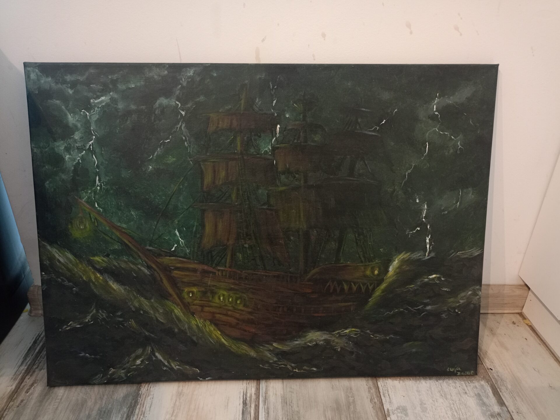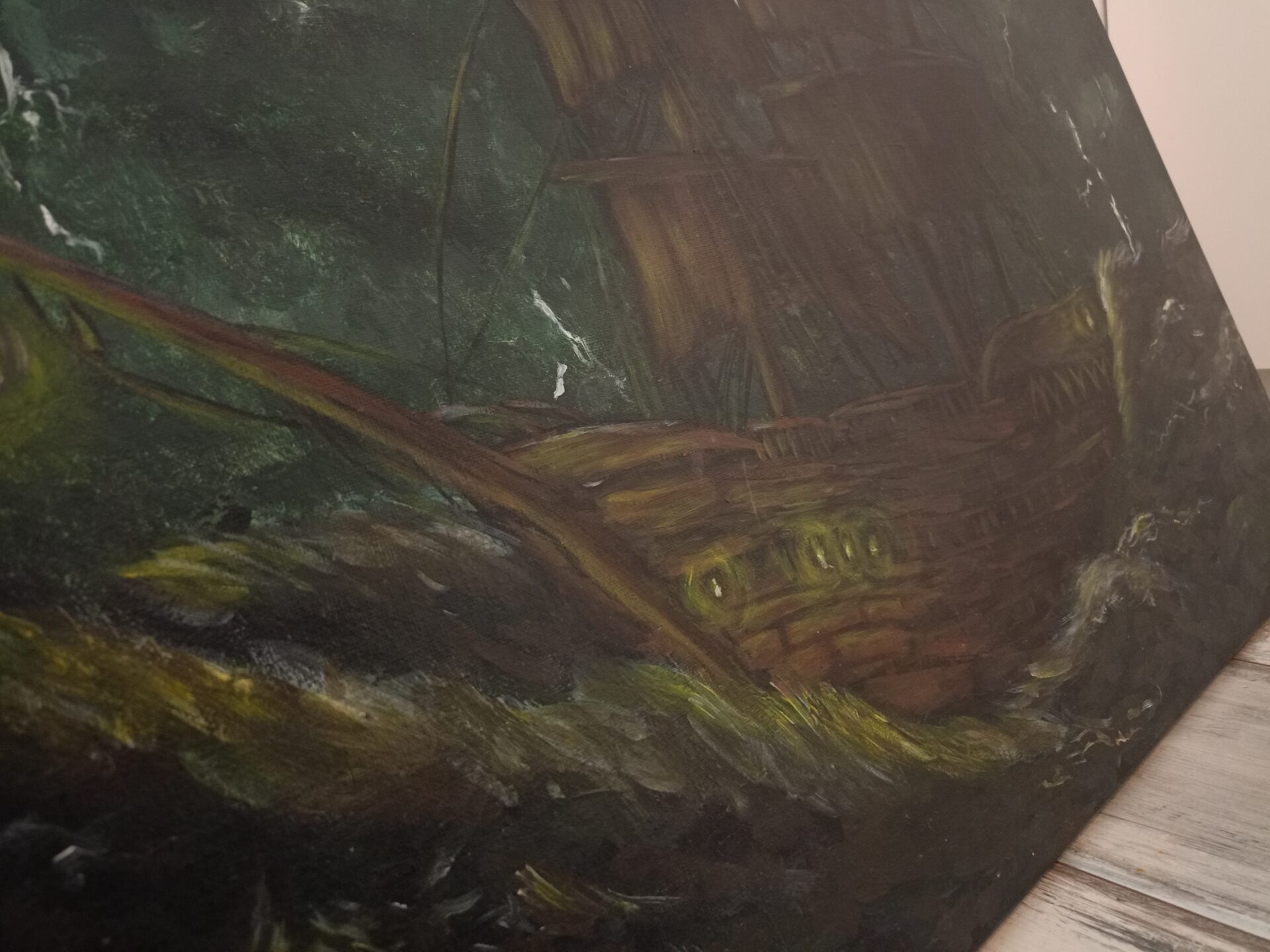 Statek na obrazie symbolizuje człowieka walczącego z burzą negatywnych emocji, dzielnie walcząc z palącym się światłem nadzieji w sercu. Tym samym oświetlając otaczające zagrożenia. Obraz z pierwszej perspektywy jest przytłaczający jedna k widać w nim również ekspresywność walce z siłami natury na które nie mamy wpływu.
