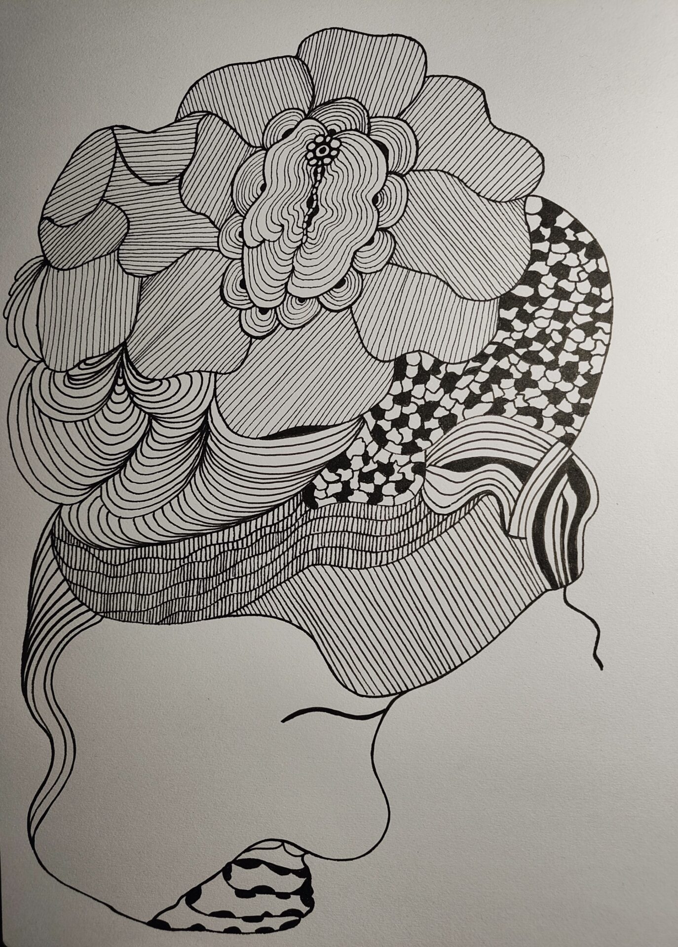 Format A3. Rysunek wykonany czarnymi cienkopisami gr 0,01-0,8. Papier biały. Praca intuicyjna, bez planu. Polecam inne moje grafiki.