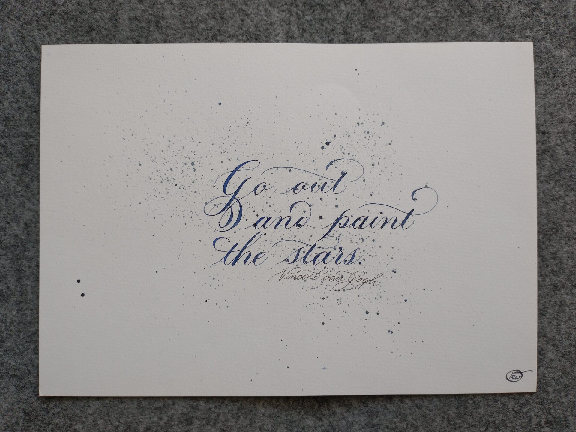 Kaligrafia – ekolina na papierze akwarelowym, format A5 w orientacji poziomej.