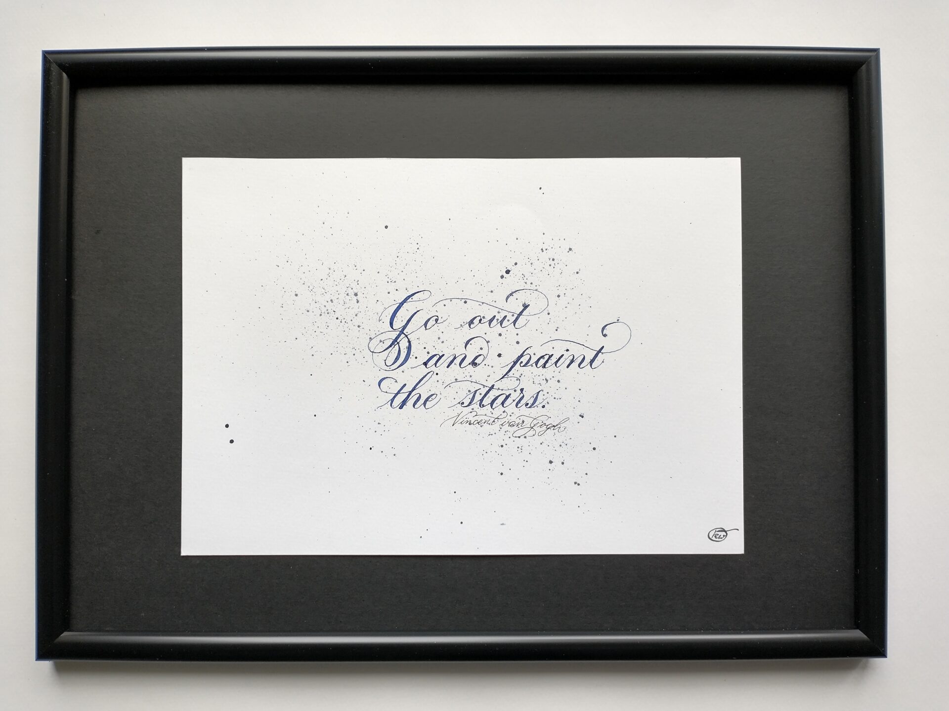 Istnieje możliwość wykonania na zamówienie kaligraficznej pracy odręcznej lub cyfrowej (projekty log, nadruków, tatuaży itp.).