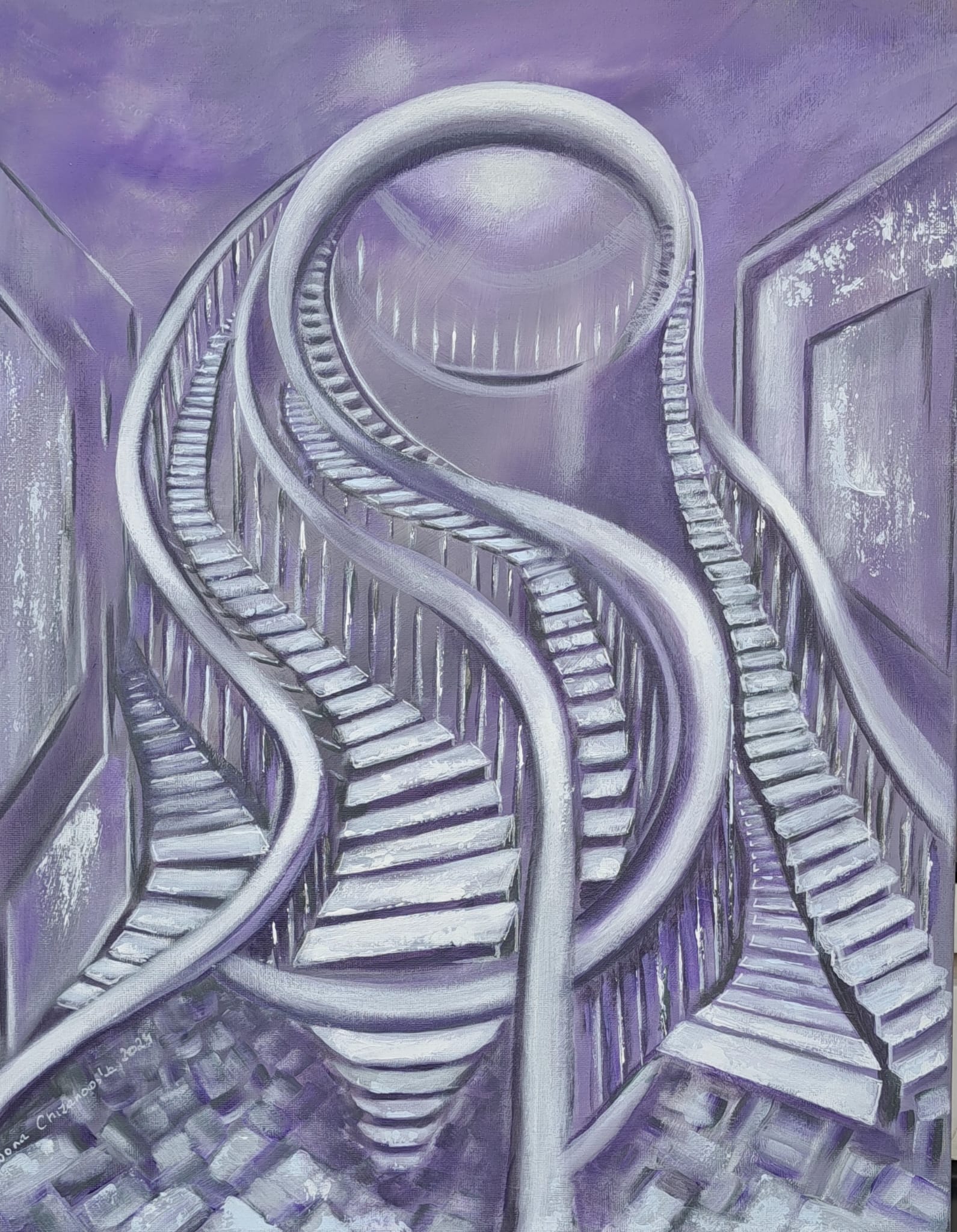 Obraz jest wyrazem starej mądrości „Raz na górze, raz na dole”. Samo życie i mój odbiór. Malowany farbami akrylowymi, pędzlami i szpachelką. Boki są zamalowane w kolorze tła. Zamontowana zawieszka.