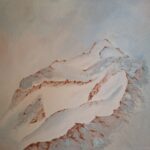 Góry namalowane we mgle w pastelowych kolorach. Płótno o wymiarach 30×40 cm. Farby akrylowe.