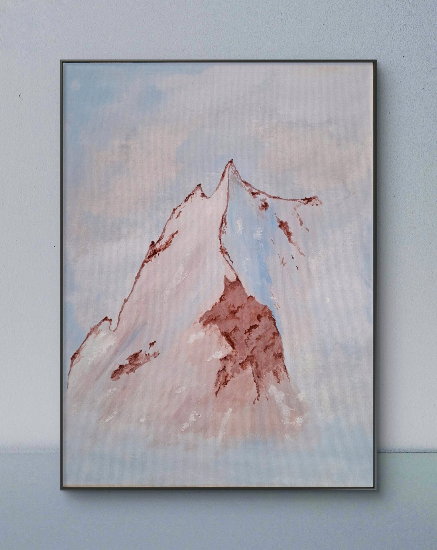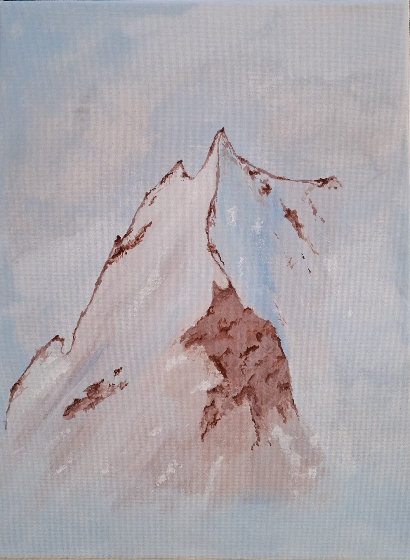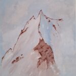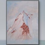 Góry namalowane we mgle w pastelowych kolorach. Płótno o wymiarach 30×40 cm. Farby akrylowe.