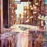 Nastrojowa, duża akwarela o wymiarach 40×60 cm, w oprawie 50×70 cm.