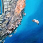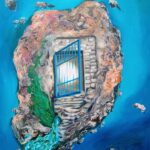 Unikalny, autorski, wg własnego pomysłu obraz zainspirowany moim niedawnym pobytem na Malcie. Jednak to pobliska wyspa Gozo podbiła moje serce. Spokojna i tajemnicza. Gozańczycy uważają ją za wyspę szczęścia. Tam właśnie urzekło mnie zejście do błękitnej groty przez błękitną furtkę. Furtka jest prawdziwa, reszta to moja wizja tej wyspy. Obraz namalowałam na płótnie 40 x 50 cm farbami akrylowymi, pędzlami i szpachelkami, stąd nierówności powierzchni obrazu. Malowałam z przerwami około 2 tygodnie, w chwilach natchnienia coś dodając lub zmieniając. Teraz uważam, że o taki obraz mi chodziło.