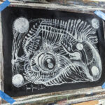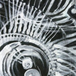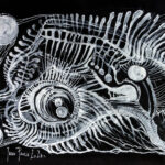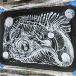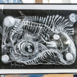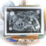 Praca autorska akryl na papierze czarnym w ramie aluminiowej pod szkłem 50×70 Akryl