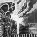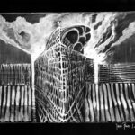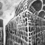 Farba akrylowa biała i czarna na papierze format 50×70 w oprawie aluminiowej czarnej pod szkłem.Praca autorska Paweł Jagła