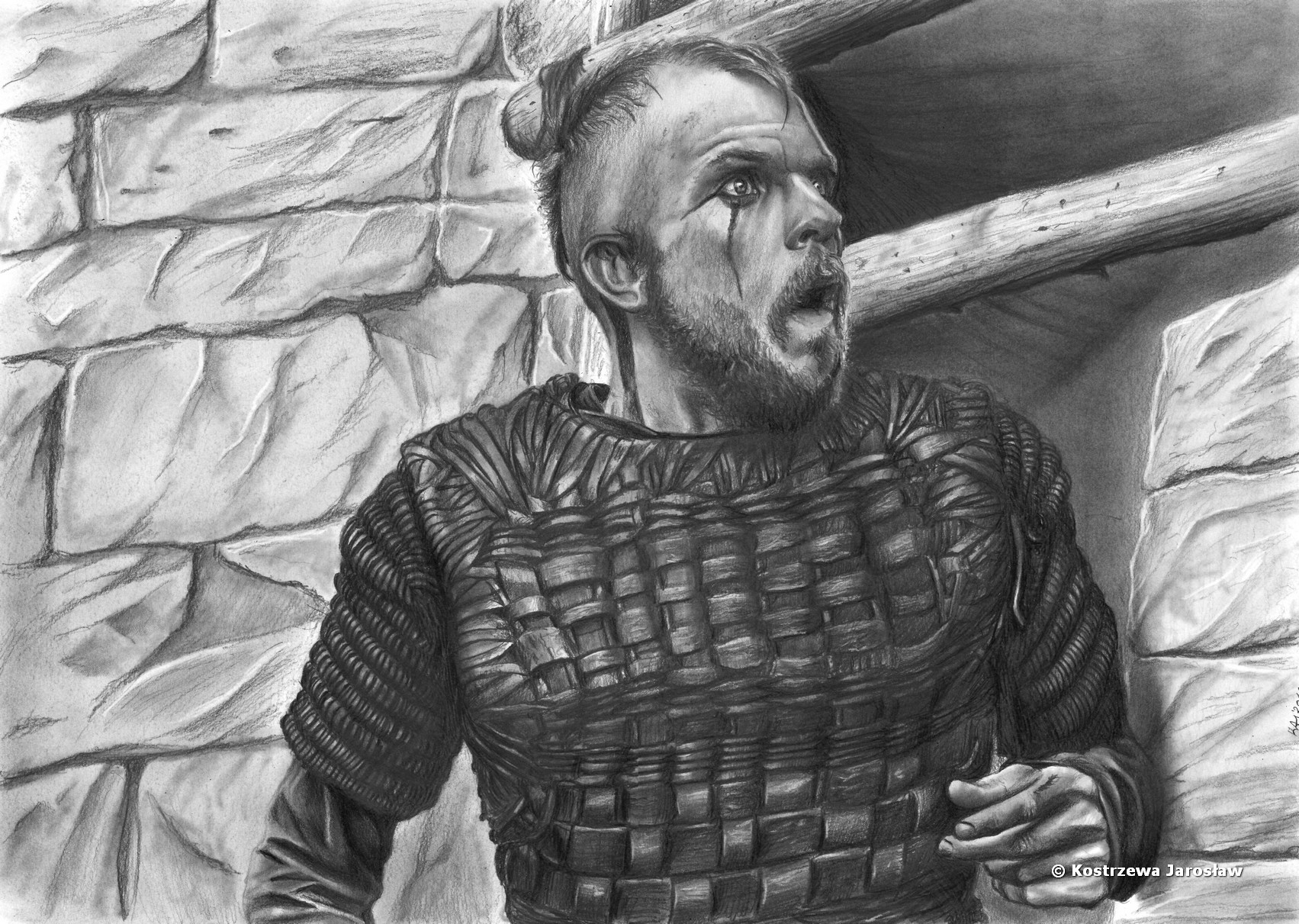 Portret Flokiego, jednego z głównych bohaterów bardzo popularnego serialu telewizyjnego „Wikingowie”.