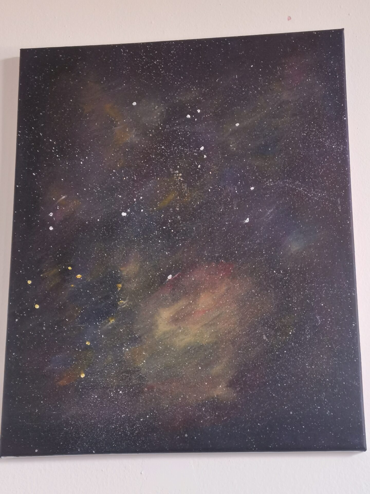 Obraz malowany ręcznie akrylem na płótnie.Przedstawia konstelacje gwiazdozbioru północnego.