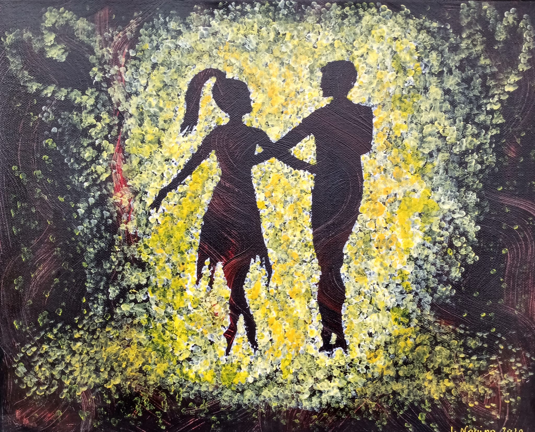 Wczesny obraz z 2020 roku. Lubię taniec i lubię kosmos. Boki są zamalowane i jest zamontowana zawieszka.