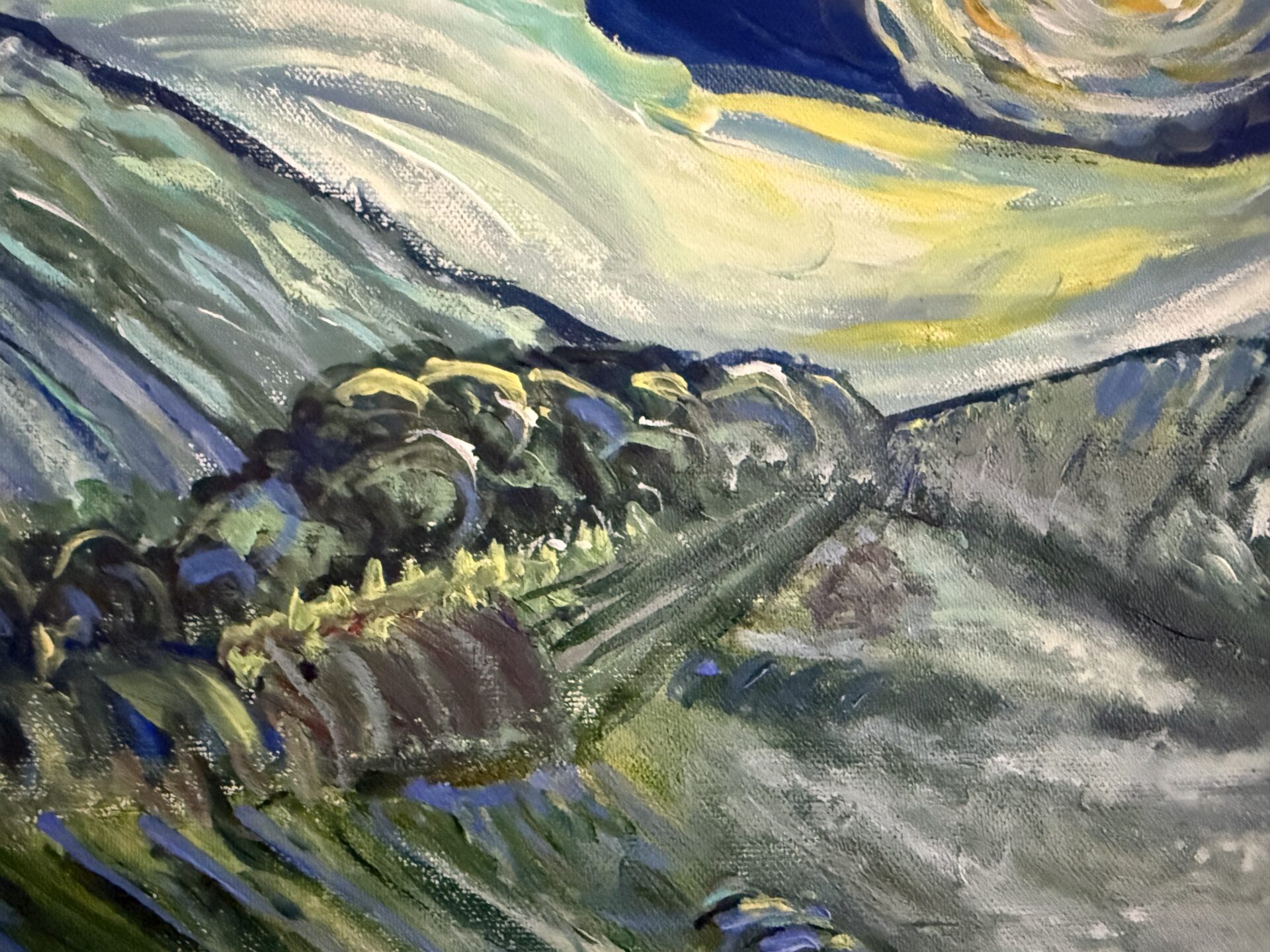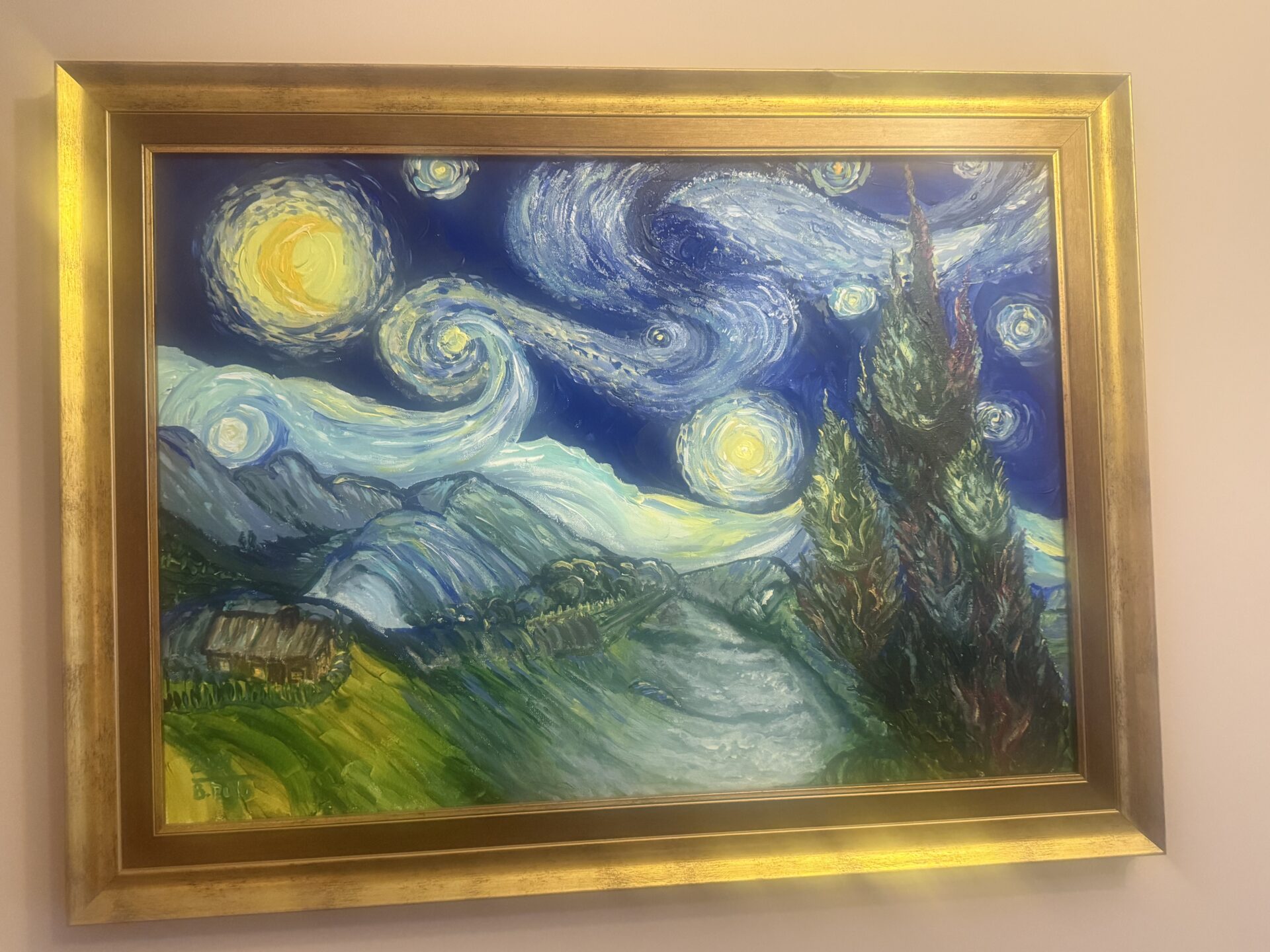 Obraz zainspirowany twórczością Vincenta van Gogha – obrazem Gwieździsta noc. To nie jest kopia!