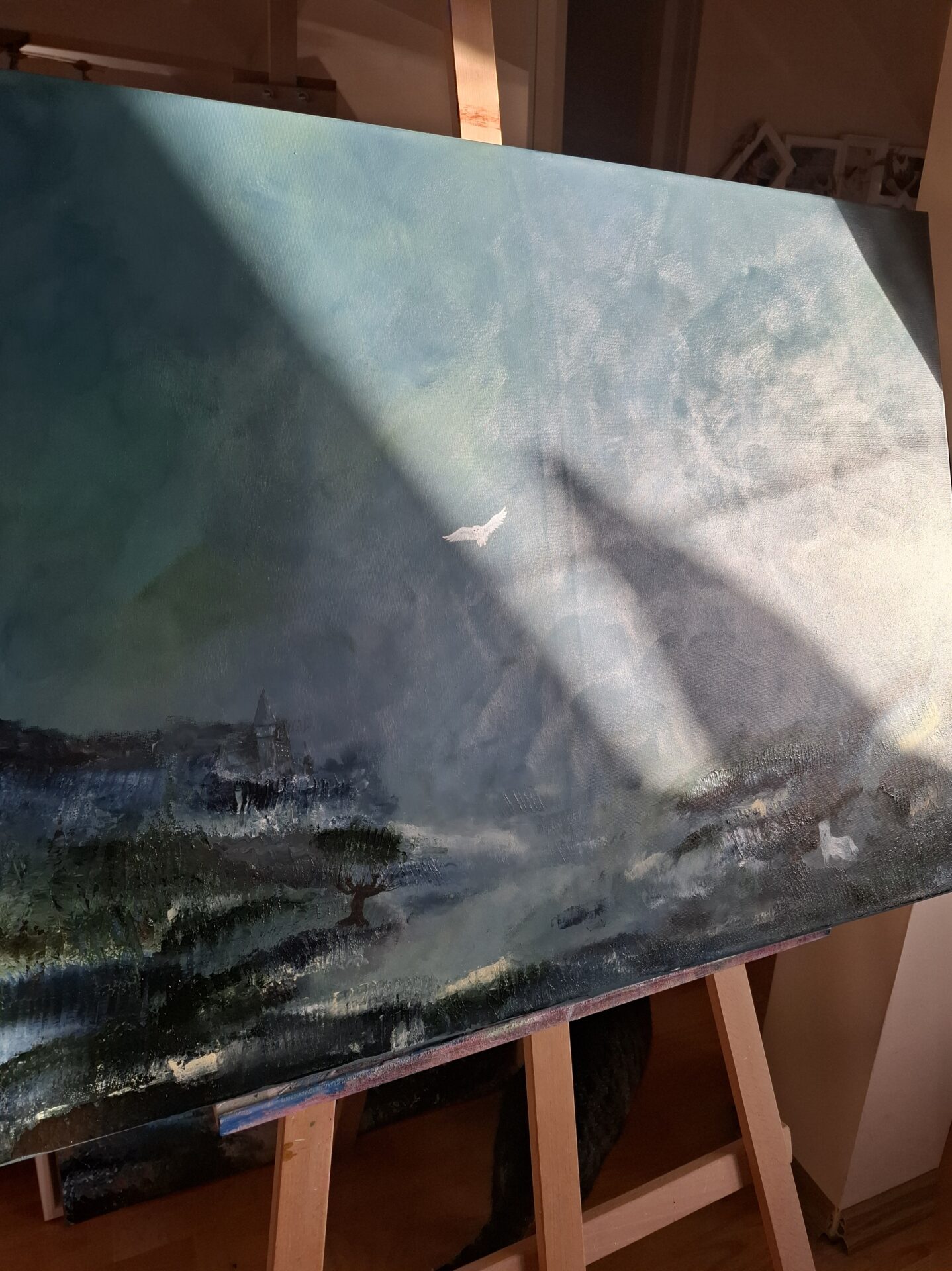 Witaj w mojej galerii! Oglądasz jeden z wielu moich obrazów. Choć wciąż kształtuję i doskonalę swój własny styl, po drodze powstało kilka świetnych dzieł sztuki, które moim zdaniem są gotowe do zaprezentowania światu. Wszystkie obrazy wykonane są farbą akrylową, na płótnie o różnych rozmiarach. Przed wysłaniem ich w podróż do nowego właściciela są zabezpieczane przed podróżą aby dojechały całe i zdrowe. Jeśli jesteś zainteresowany kupnem, zachęcam do kontaktu sms lub przez wiadomość na Facebooku, wyślę Ci więcej zdjęć oraz filmiki dzieła które Cie interesuje.