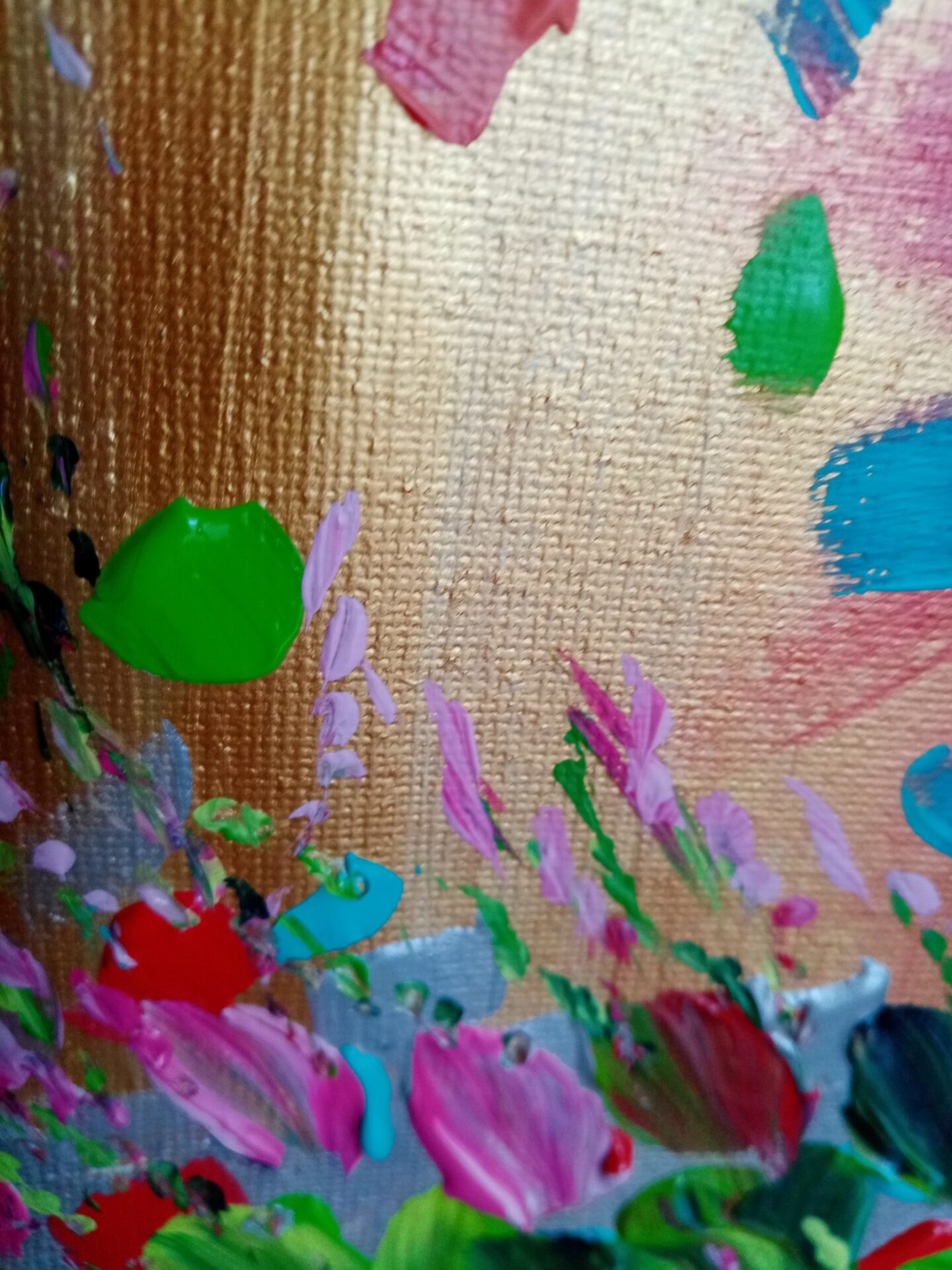 Praca wykonana na płótnie malarskim w formacie A 3 wysokiej jakości farbami akrylowymi.