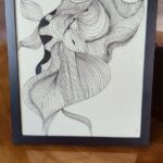 Grafika na zdjęciu wykonana została metodą Zentangle – czarny cienkopis grubość 0,1 oraz 0,4 na papierze w odcieniu ivory – w formacie A4, w zestawie z ramką. Przepiękna i niepowtarzalna dekoracja na ścianę lub na biurko (ramka do zawieszenia lub postawienia). Idealna do każdego pomieszczenia. Polecam również moje inne prace. Rysuję z pasji. Zainteresowanym mogę przesłać inne zdjęcia moich prac, które również mam na sprzedaż.