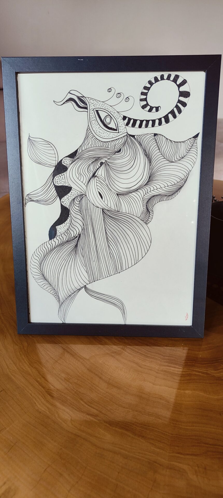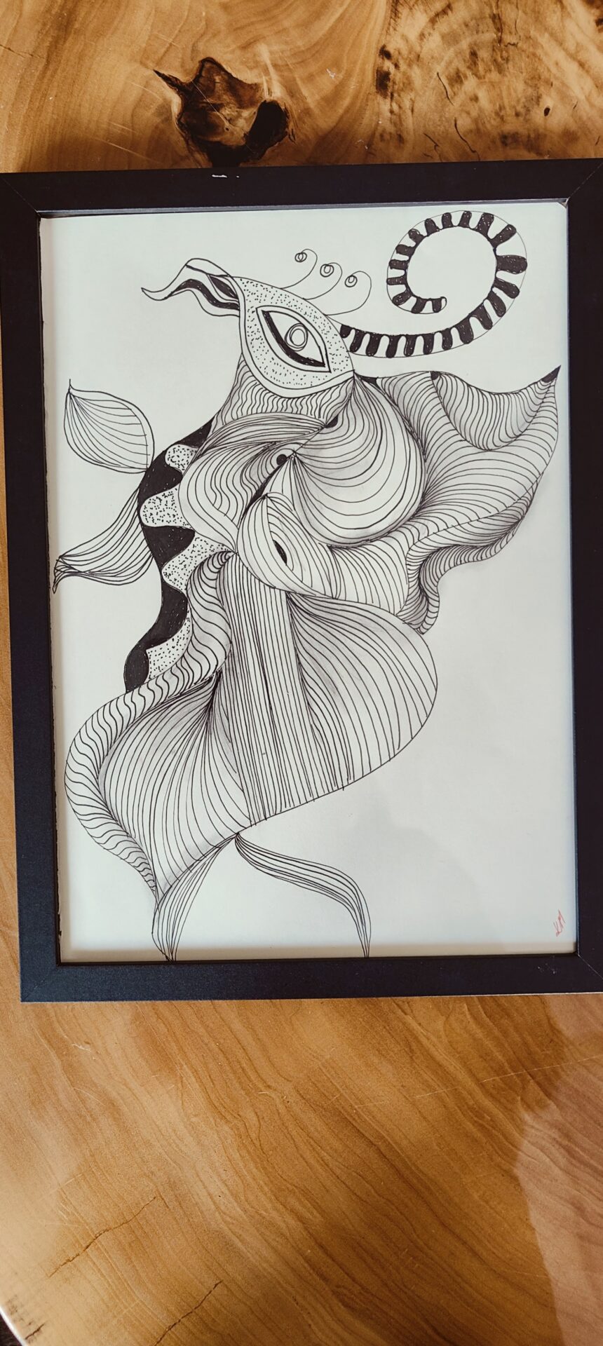 Grafika na zdjęciu wykonana została metodą Zentangle – czarny cienkopis grubość 0,1 oraz 0,4 na papierze w odcieniu ivory – w formacie A4, w zestawie z ramką. Przepiękna i niepowtarzalna dekoracja na ścianę lub na biurko (ramka do zawieszenia lub postawienia). Idealna do każdego pomieszczenia. Polecam również moje inne prace. Rysuję z pasji. Zainteresowanym mogę przesłać inne zdjęcia moich prac, które również mam na sprzedaż.