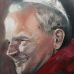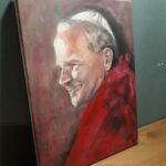 Portret realistyczny, przedstawiający Jana Pawła II na początku pontyfikatu, w 1980 roku, namalowany techniką olejną na płótnie o rozmiarach 30x40cm na podstawie fotografii autorstwa Arturo Mari.
