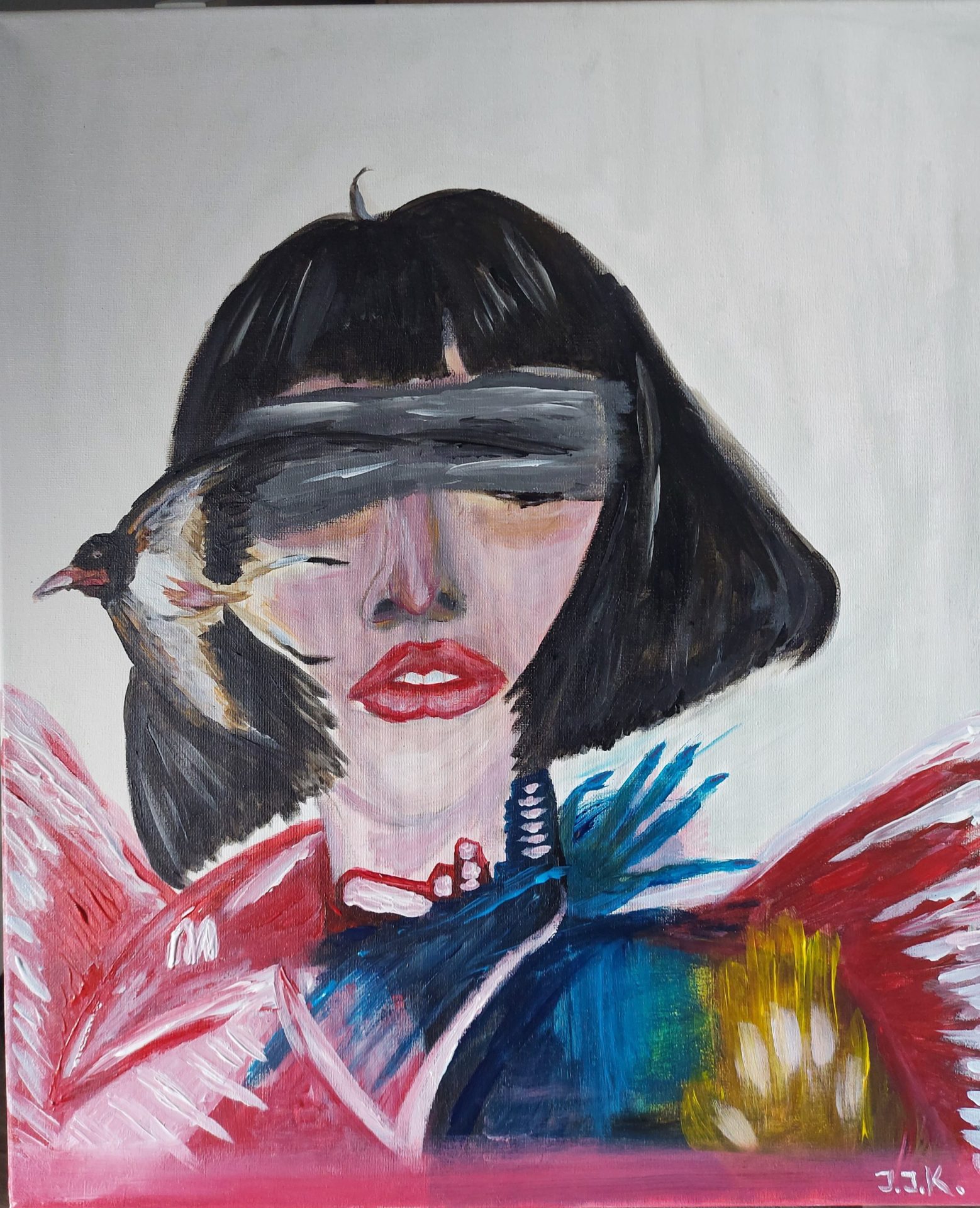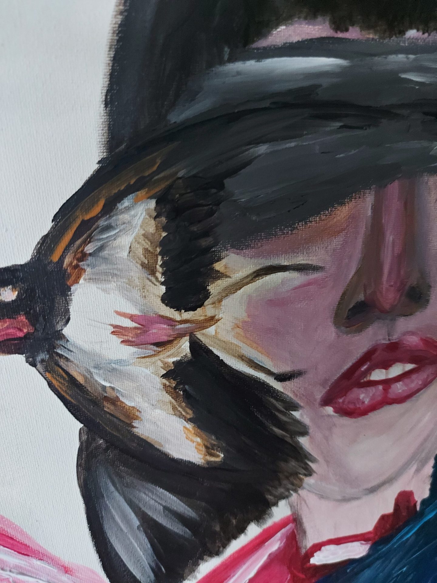 Portret kobieta, jaskółka, symbole