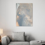 Obraz o wymiarach 70x50x1,5 cm, zatytułowany Jaspis Pejzażowy w Środku. Ta niezwykła kompozycja przypomina płytę szarą lub kamień o takiej samej nazwie. Obraz został wykonany na płótnie bawełnianym o wykończeniu matowym, co nadaje mu nowoczesny charakter i czyni go idealnym dodatkiem do większości wnętrz.