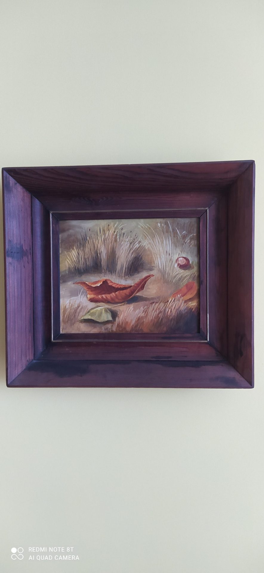 Obraz nieznanego autora ” Jesień”. Kupiony w Desie w latach dziewięćdziesiątych XX wieku. Wymiary obrazu 24×20 cm. Wymiary z ramą 36×33 cm.