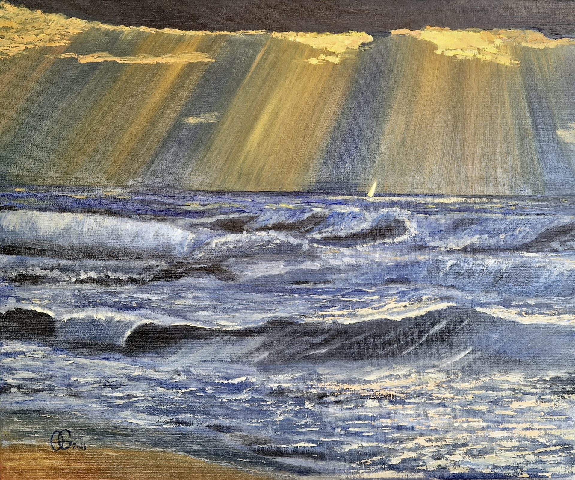 Obraz ma wykończone boki, zawerniksowany, na lnianym podobraziu, bez ramy, sygnowany. Termin wysyłki 2-4 dni.