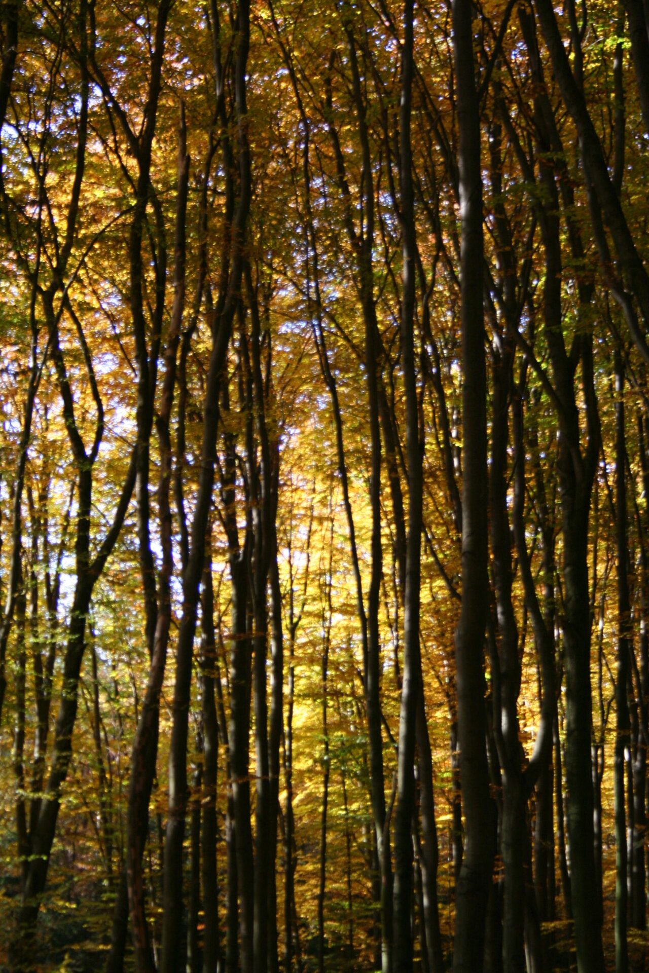 Fotografia przedstawiająca jesienny las bukowy, wydruk 30cm x 45cm na papierze półmatowym.