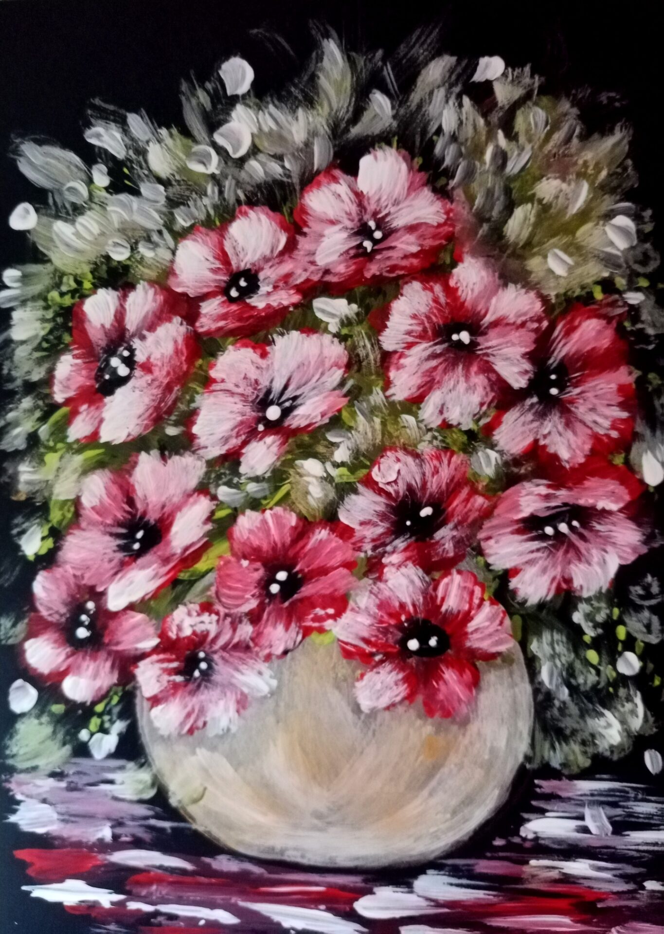 Ręcznie malowana kartka okolicznościowa. Kartka malowana została wysokiej jakości farbą akrylową.